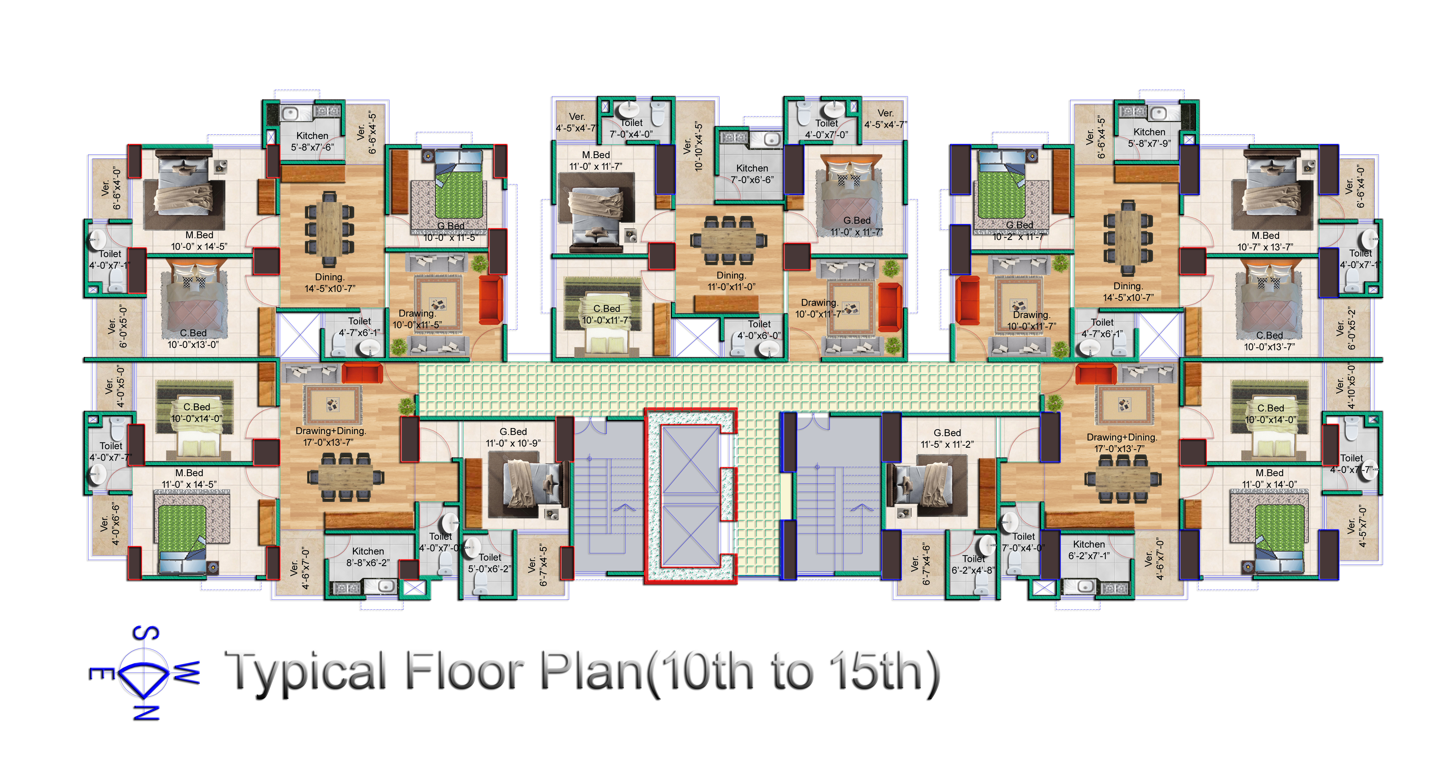 | Apartment Size |  1050 – 2000 SFT (Approx.) |