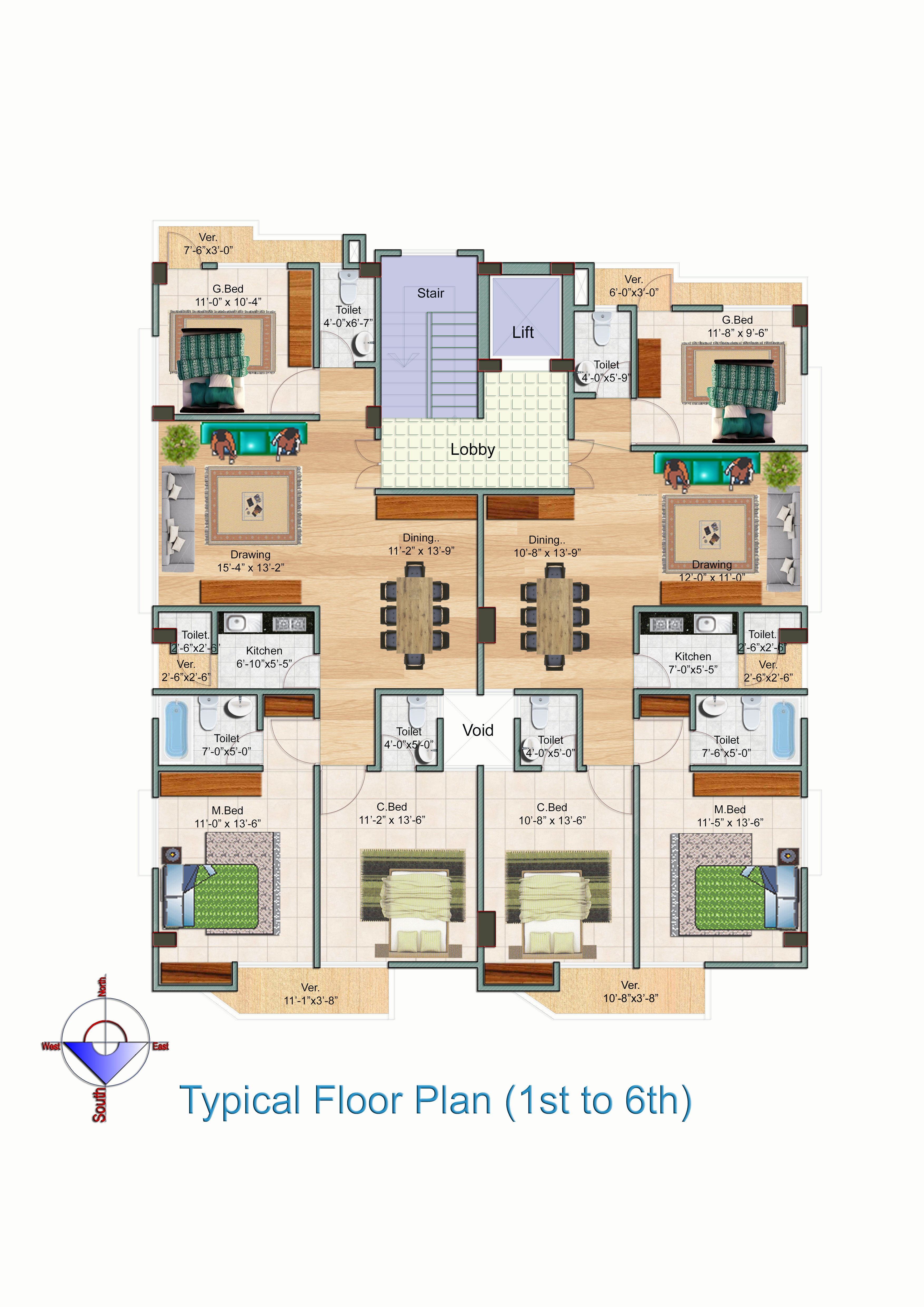 | Number of units in each floor | 02 Nos |